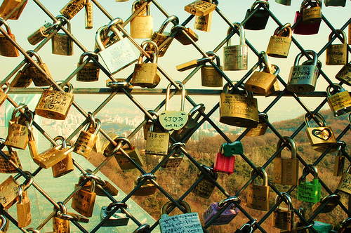 There is something interesting that we found. There are tons of love locks along the fences.